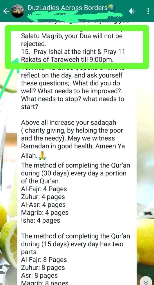 The title of the message was ‘EFFECTIVE RAMADAN ROUTINE’: Here is the screenshot: