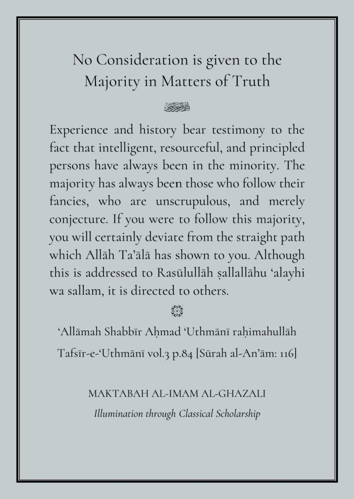 Do you base it on the majority? Well what does the Quraan Majeed say about your definition of majority?