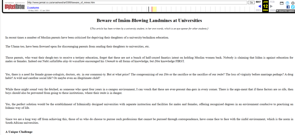 https://web.archive.org/web/20040112015520/http://www.jamiat.co.za/arrasheed/ar0306/beware_of_mines.htm