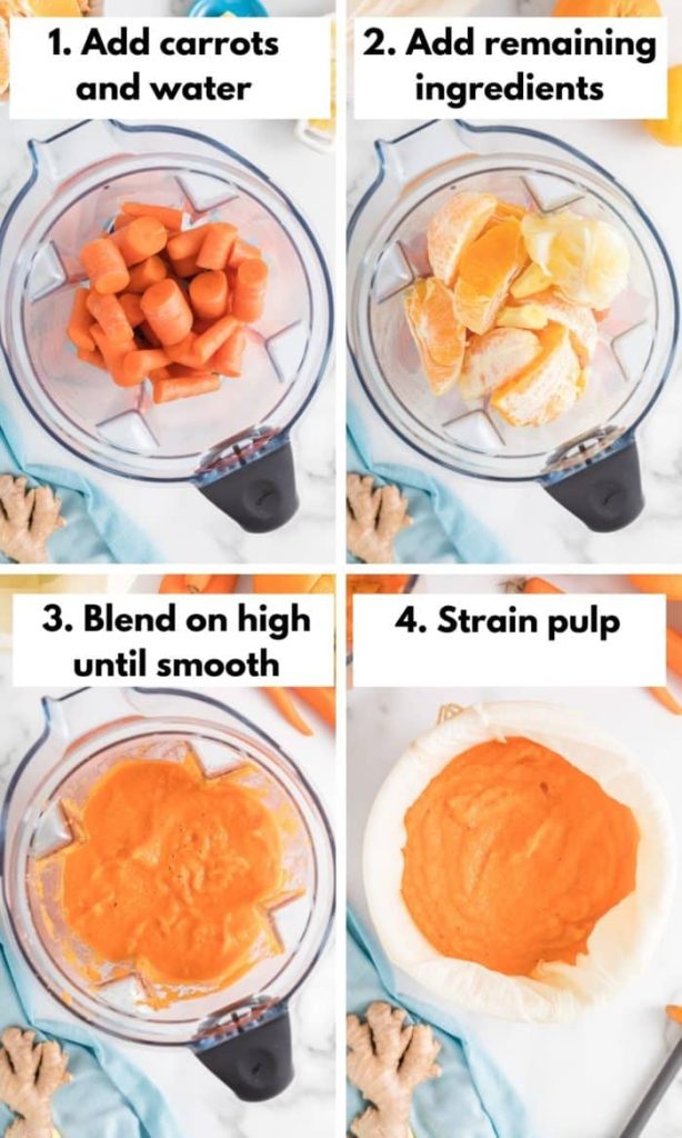 While you can just use carrots to make a homemade carrot juice, I think adding a few other ingredients makes it really special. The lemon and orange juices add brightness, while the ginger adds a little tang.You likely already have these ingredients in your fridge or pantry