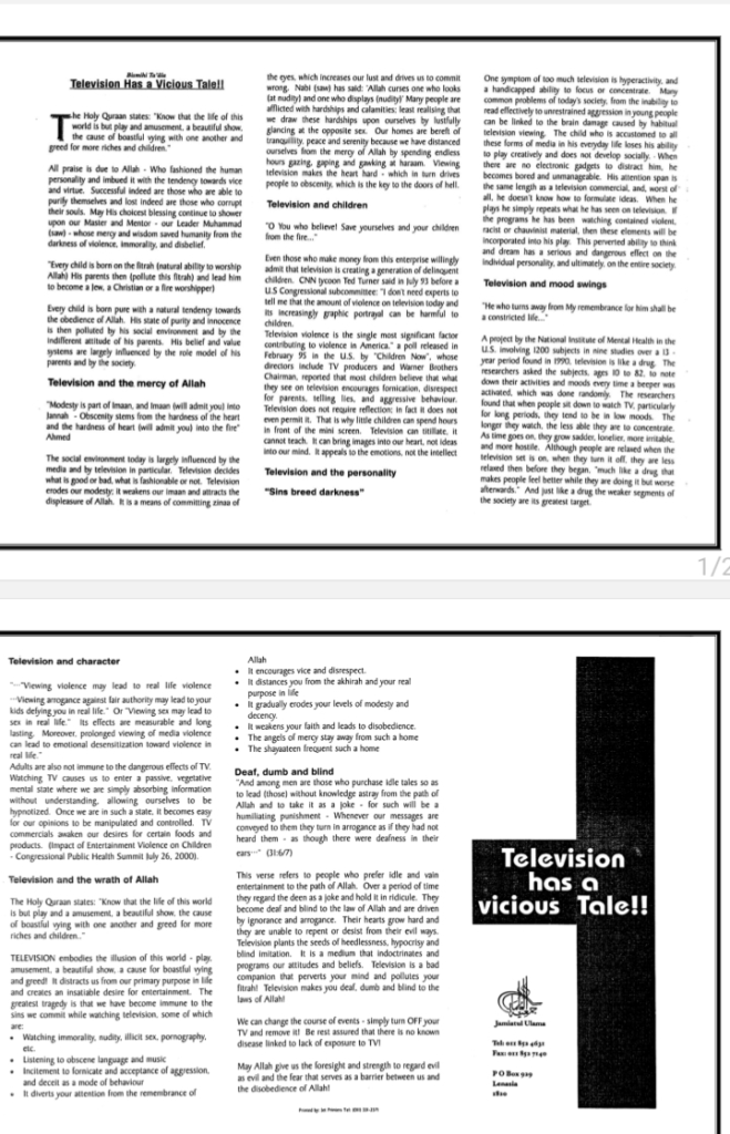 Jamiatul Ulama South Africa who has been on a centenary celebration spree should consider the real Jamiats stance on television-
