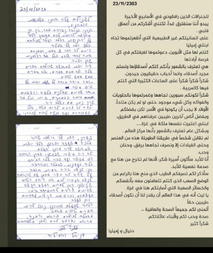 I will forever be a captive of gratitude because she did not leave here with permanent psychological trauma.I will remember your kind actions given here, despite the difficult situation you were dealing with personally and the heavy losses you experienced here in Gaza. I wish that in this world, we can truly appreciate being good friends.I sincerely wish you all health and well-being…Health and love to you and your families.Thank you very much,