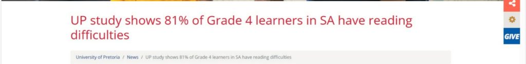 2. 80% of grade 4 learners still cannot read to understand, according to University of Pretoria