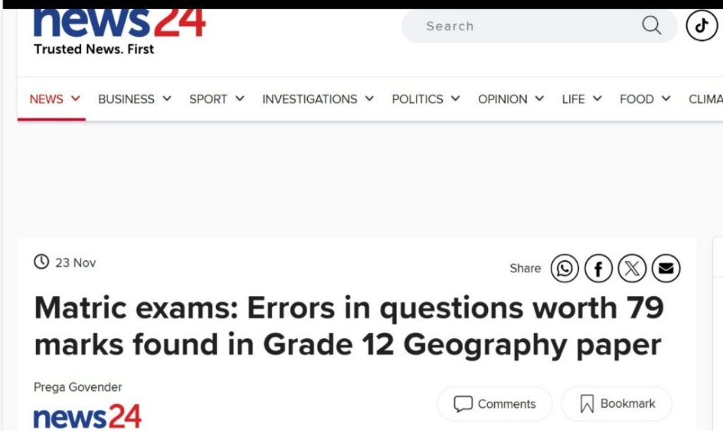 3. Forget students failing the 30% pass mark, examiners are now failing, 79 marks worth of errors found in the matric geography paper?
